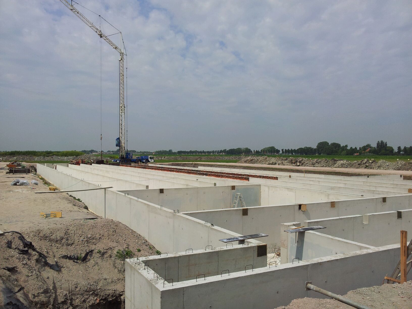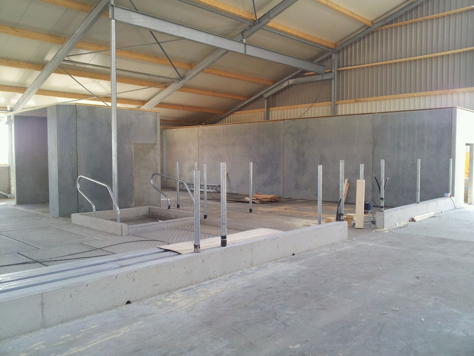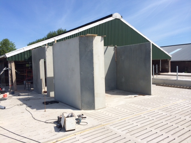 *Profit ligboxafscheidingen uitgevoerd met golfschoftboom en knieboombuis 160 mm