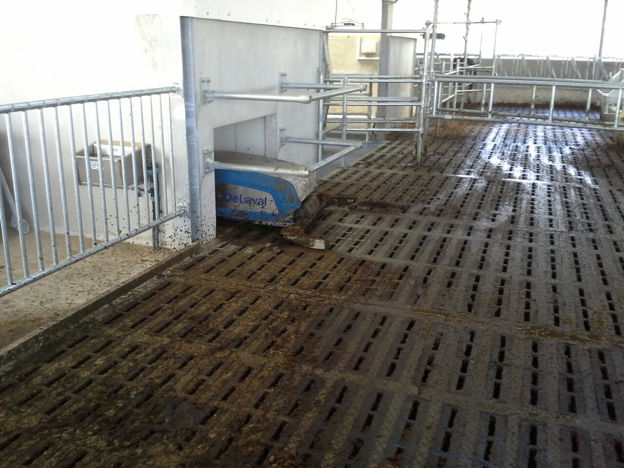 *DeLaval mestrobot met sproei-installatie