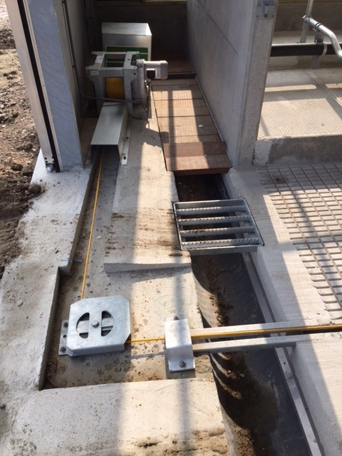 *Roosterschuifinstallatie type touw op Veld-V Eco vloer